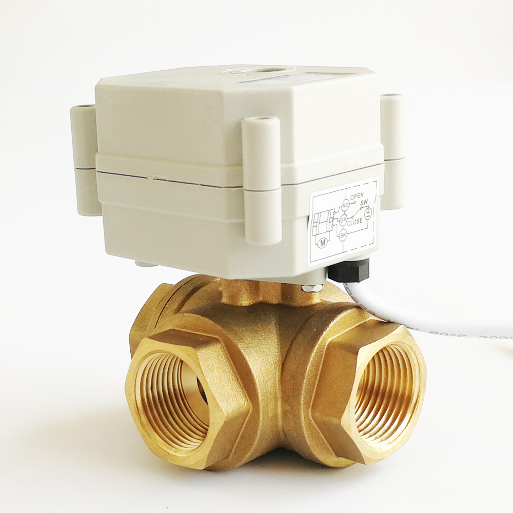 3Nm Brass 3-Way Electric Ball Valve with position indicator CE certified, IP67 Metal Gears